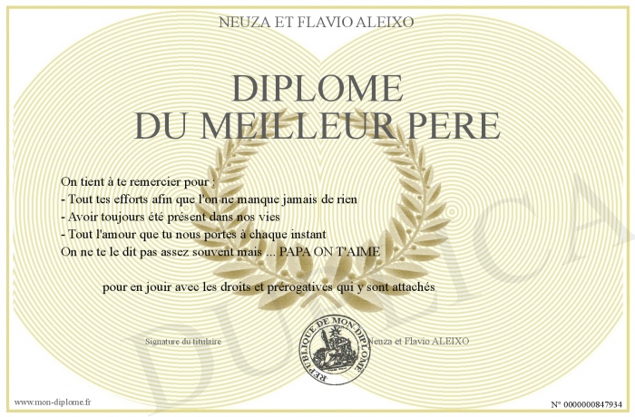Envoyez par email votre Diplôme du meilleur Père personalisé