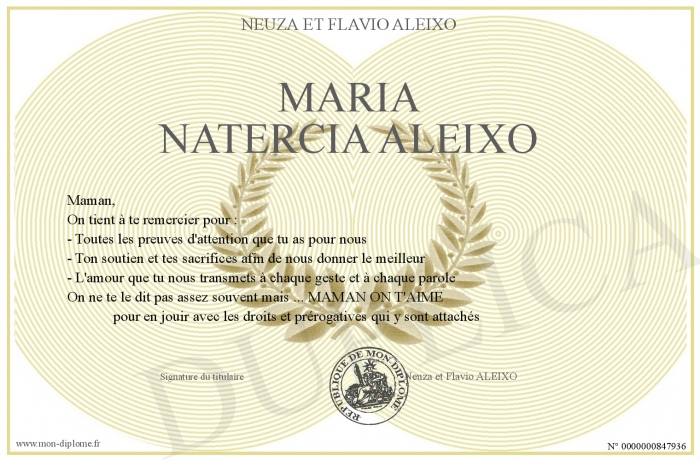 Envoyez par email votre Maria Natércia ALEIXO personalisé