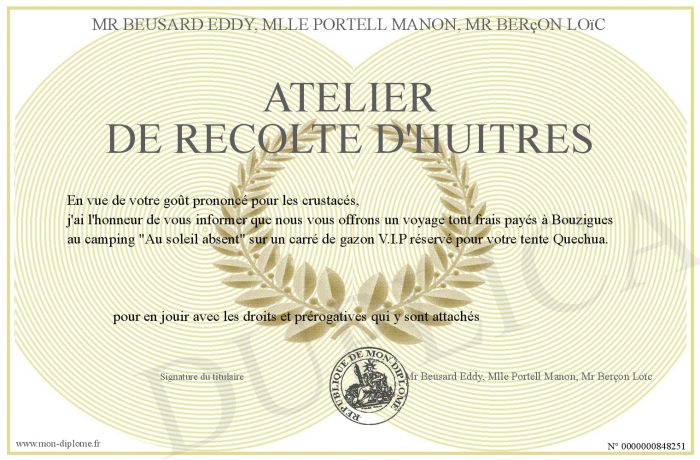 Envoyez par email votre Atelier de récolte d'huitres personalisé