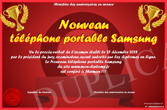 Envoyez par email votre Nouveau téléphone portable Samsung personalisé