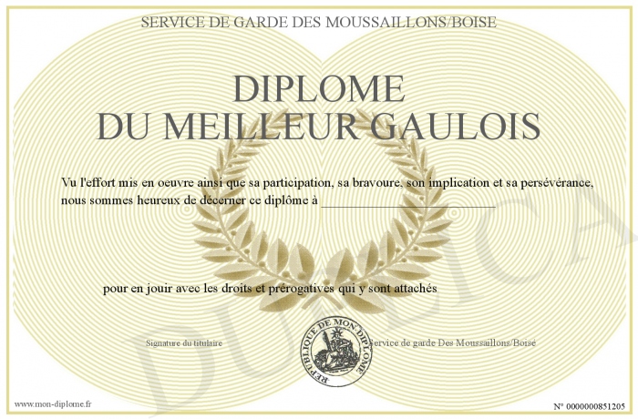 Envoyez par email votre Diplôme du meilleur Gaulois personalisé
