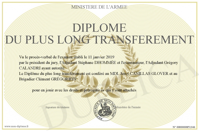 Envoyez par email votre Diplôme du plus long transférement personalisé