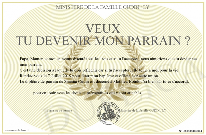 Envoyez par email votre Veux tu devenir mon parrain ? personalisé