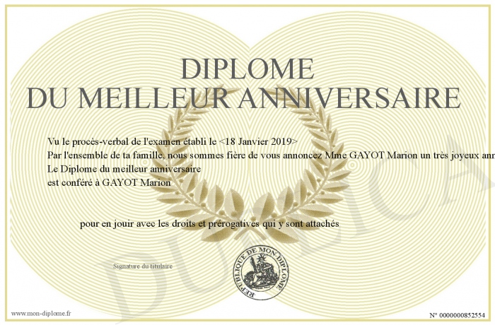Envoyez par email votre Diplôme du meilleur anniversaire personalisé