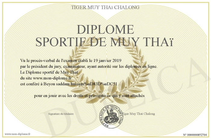 Envoyez par email votre Diplôme sportif de Muy Thaï personalisé