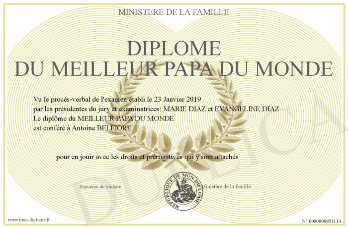Envoyez par email votre Diplôme du meilleur papa du monde personalisé