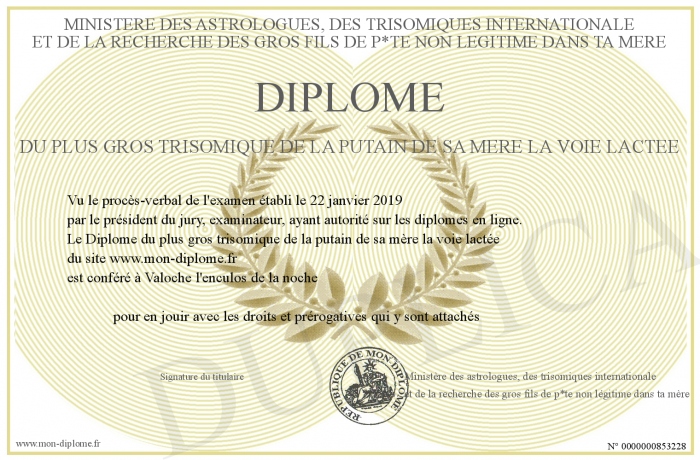Envoyez par email votre Diplôme du plus gros trisomique de la putain de sa mère la voie lactée personalisé