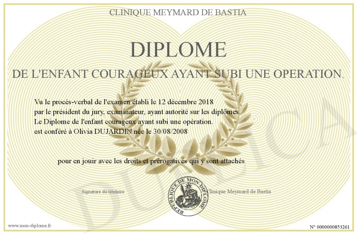 Envoyez par email votre Diplôme de l'enfant courageux ayant subi une opération. personalisé
