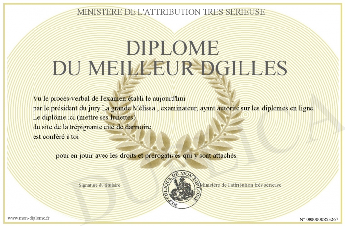 Envoyez par email votre Diplôme du meilleur Dgilles personalisé