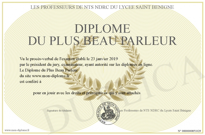 Envoyez par email votre Diplôme du Plus Beau Parleur personalisé