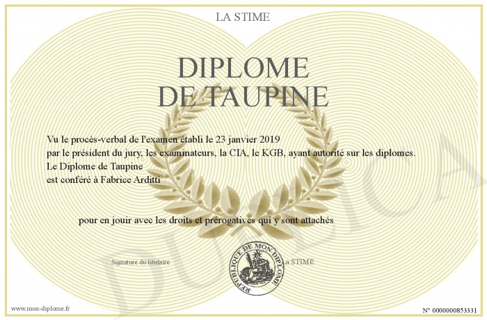 Envoyez par email votre Diplôme de Taupine personalisé