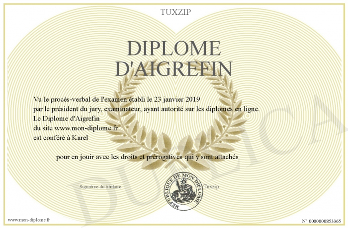 Envoyez par email votre Diplôme d'Aigrefin personalisé