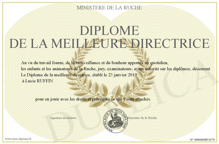 Envoyez par email votre Diplôme de la meilleure directrice personalisé