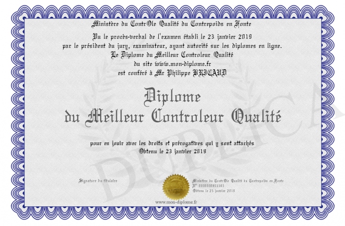 Envoyez par email votre Diplome du Meilleur Contrôleur Qualité personalisé