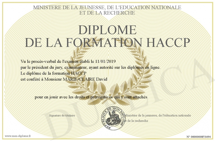 Envoyez par email votre Diplôme de la formation HACCP personalisé