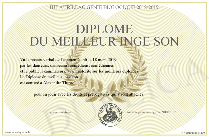 Envoyez par email votre Diplôme du meilleur inge son personalisé