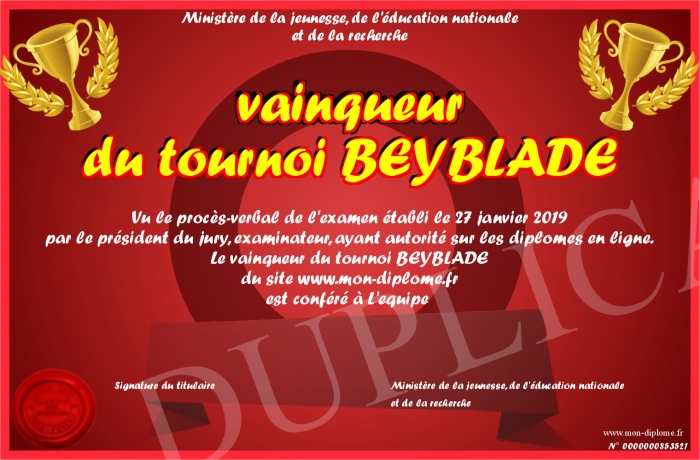 Envoyez par email votre vainqueur du tournoi BEYBLADE personalisé