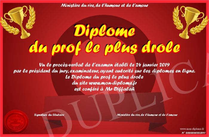 Envoyez par email votre Diplome du prof le plus drole personalisé