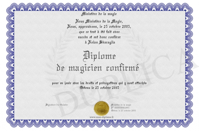 Envoyez par email votre Diplôme de magicien confirmé personalisé