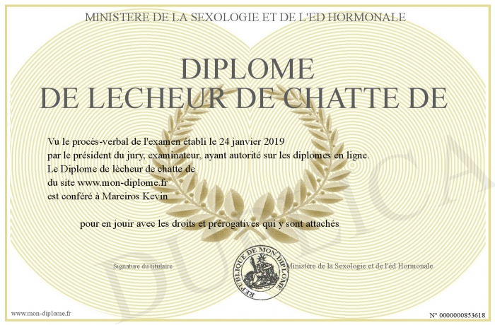 Envoyez par email votre Diplôme de lècheur de chatte de personalisé