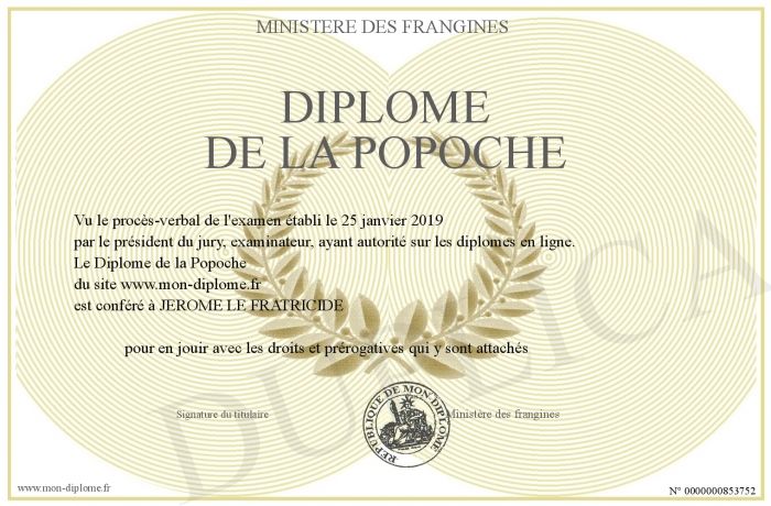 Envoyez par email votre Diplôme de la Popoche personalisé
