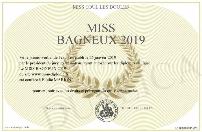 Envoyez par email votre MISS BAGNEUX 2019 personalisé
