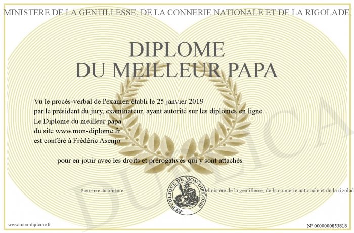 Envoyez par email votre Diplôme du meilleur papa personalisé