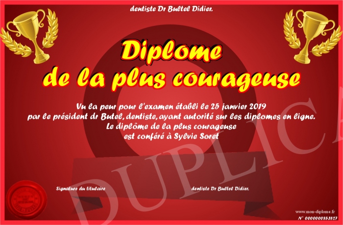 Envoyez par email votre Diplôme de la plus courageuse personalisé