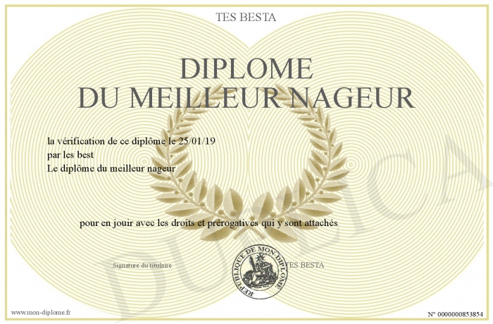 Envoyez par email votre diplôme du meilleur nageur personalisé
