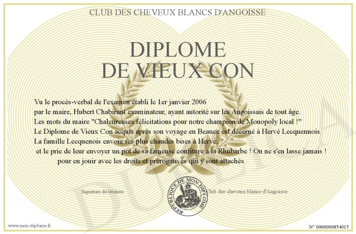 Envoyez par email votre Diplôme de Vieux Con personalisé