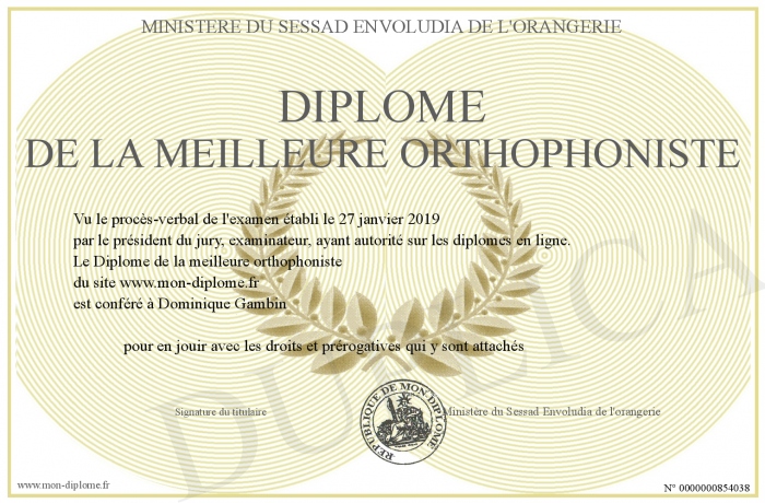 Envoyez par email votre Diplôme de la meilleure orthophoniste personalisé