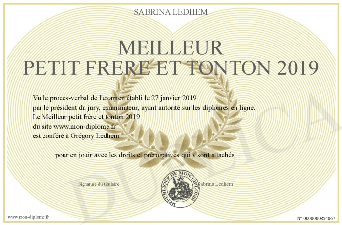 Envoyez par email votre Meilleur petit frère et tonton 2019 personalisé