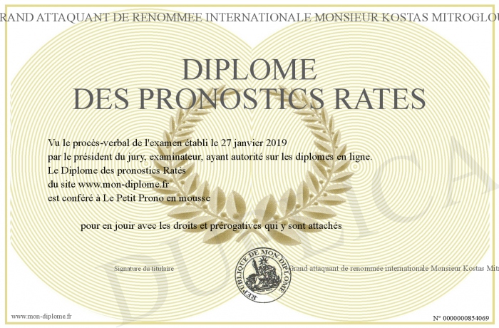 Envoyez par email votre Diplôme des pronostics Ratés personalisé