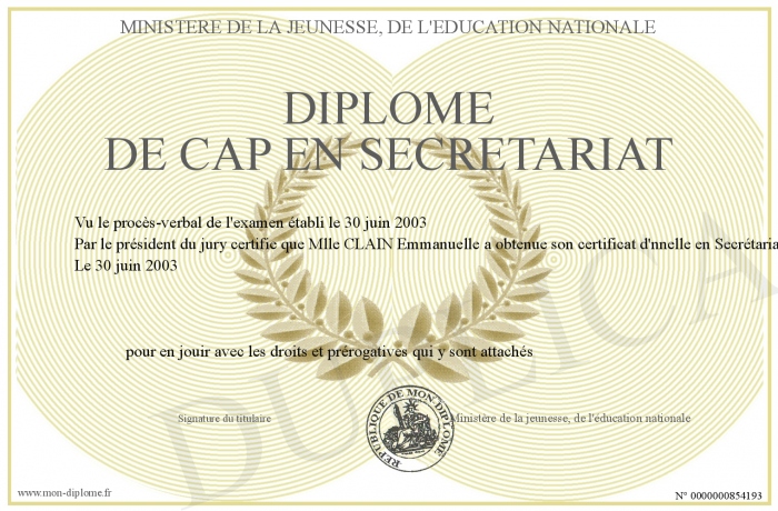 Envoyez par email votre diplome de cap en secretariat personalisé