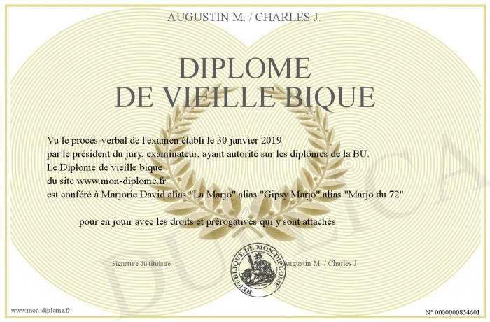 Envoyez par email votre Diplôme de vieille bique personalisé