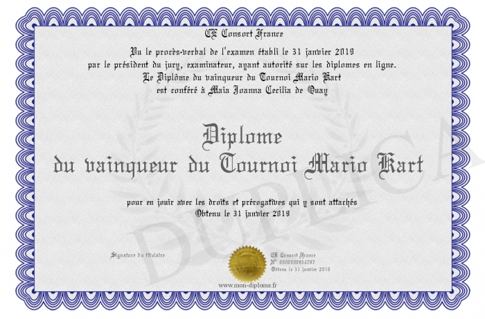 Envoyez par email votre Diplôme du vainqueur du Tournoi Mario Kart personalisé