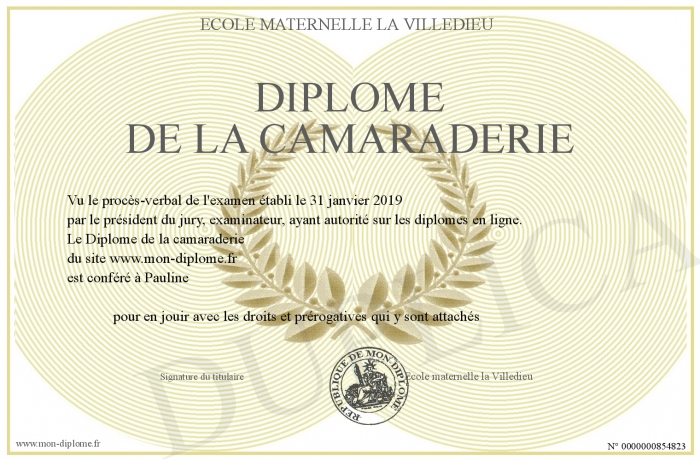 Envoyez par email votre Diplôme de la camaraderie personalisé