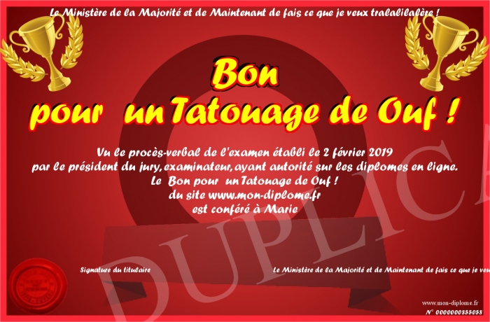 Envoyez par email votre Bon pour un Tatouage de Ouf ! personalisé