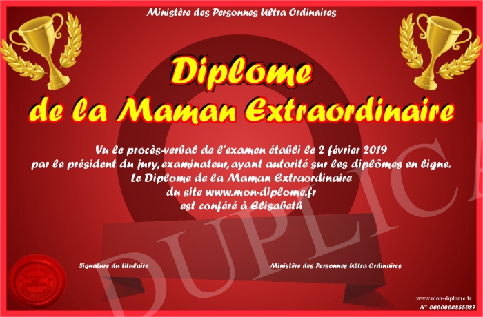 Envoyez par email votre Diplôme de la Maman Extraordinaire personalisé