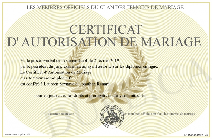 Envoyez par email votre Certificat d' Autorisation de Mariage personalisé