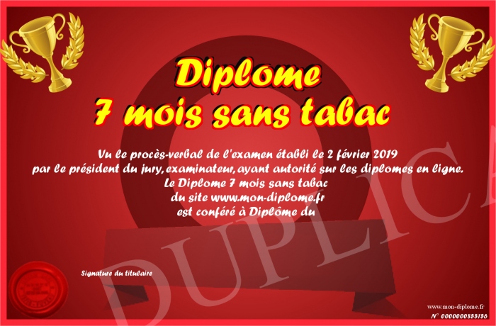 Envoyez par email votre Diplôme 7 mois sans tabac personalisé