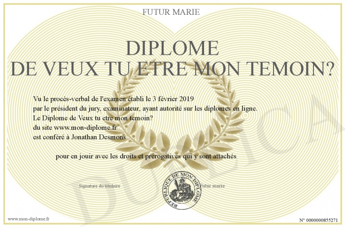 Envoyez par email votre Diplôme de Veux tu etre mon temoin? personalisé