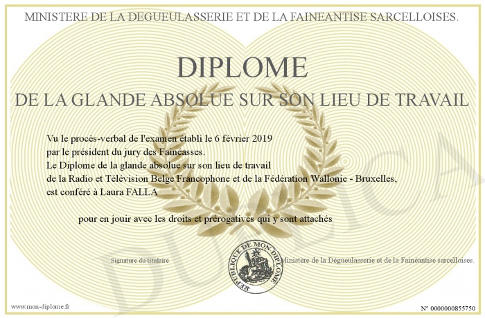 Envoyez par email votre Diplôme de la glande absolue sur son lieu de travail personalisé