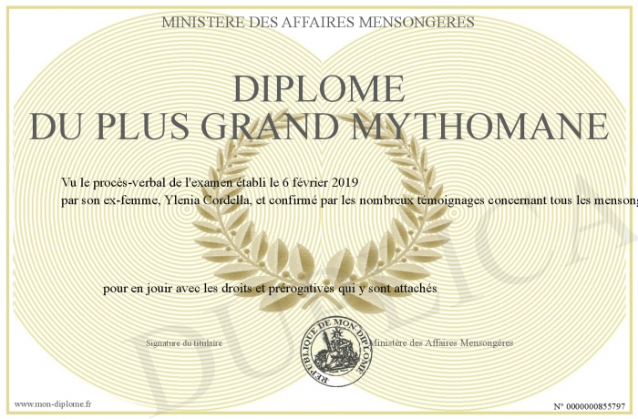Envoyez par email votre Diplôme du plus grand mythomane personalisé