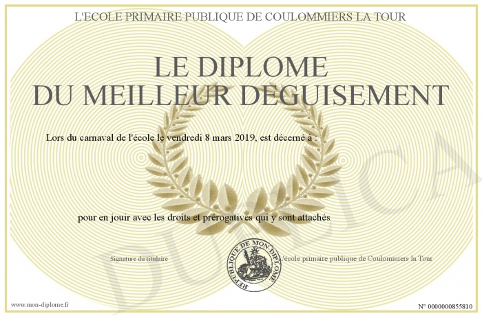 Envoyez par email votre Le diplôme du meilleur déguisement personalisé