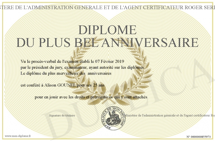 Envoyez par email votre Diplôme du plus bel Anniversaire personalisé