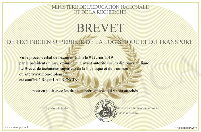 Envoyez par email votre Brevet de technicien supérieur de la logistique et du transport personalisé