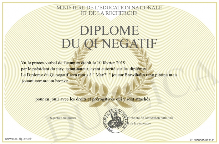 Envoyez par email votre Diplôme du Qi negatif personalisé