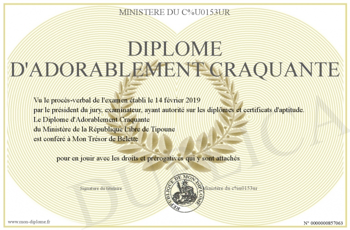 Envoyez par email votre Diplôme d'Adorablement Craquante personalisé