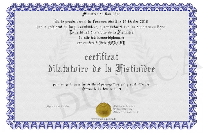 Envoyez par email votre certificat dilatatoire de la Fistinière personalisé